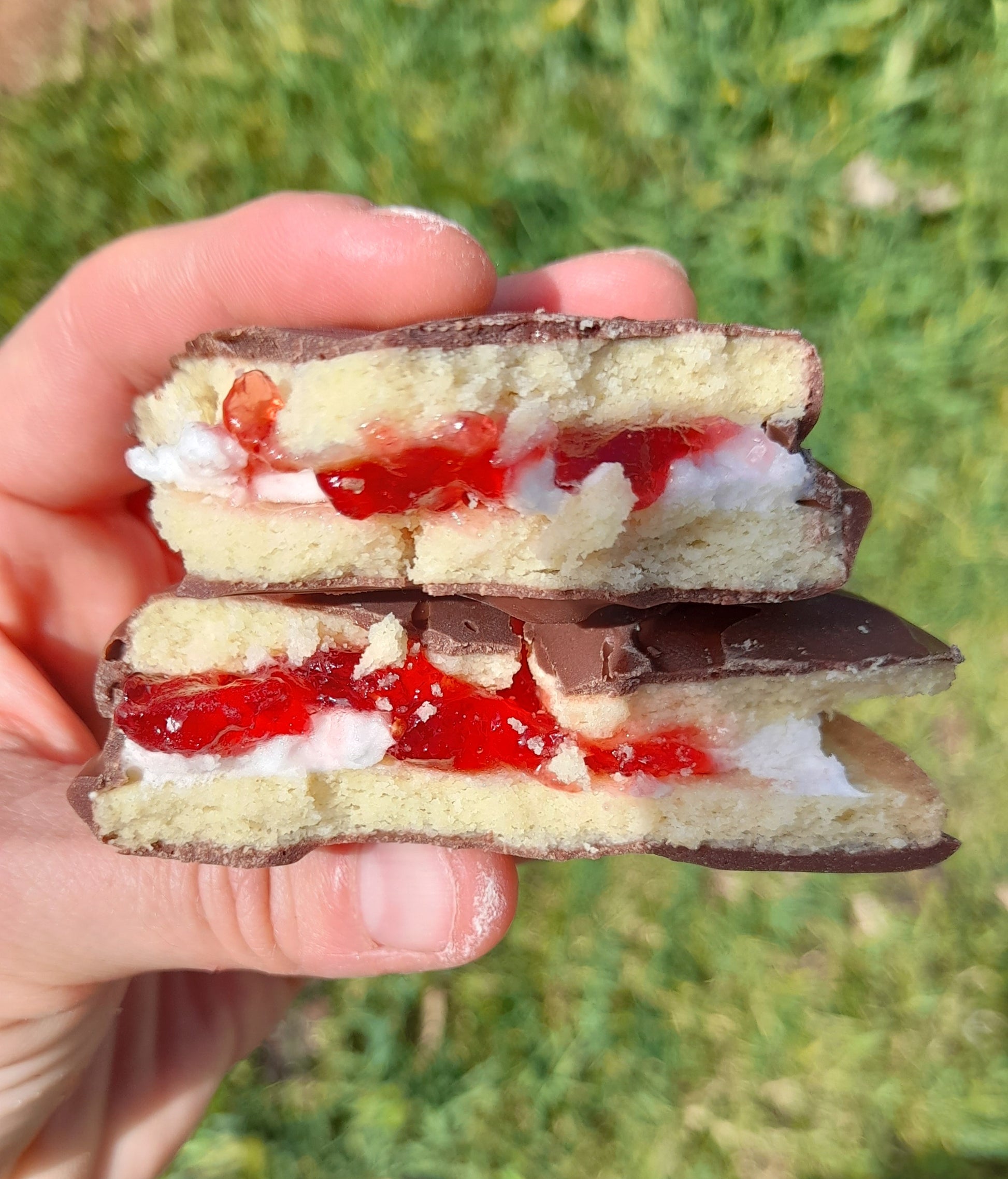 INGREDIENTS - Salted butter, caster sugar, plain flour, raspberry jam, marshmallow (sugar, gelatine, vanilla extract), nestle milk melts, white melts etc